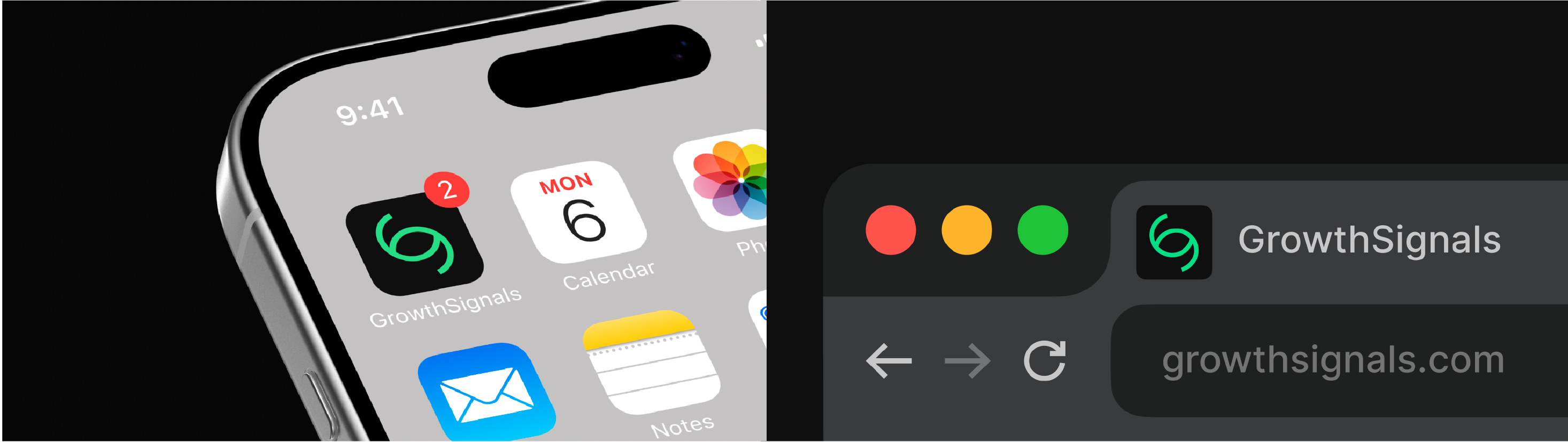 The brand logo is purposely designed as a visual promise that GrowthSignals will detect actionable opportunities for business growth.